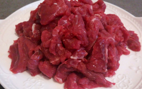 3、用的是菜籽油(菜籽油要等到冒烟以后,再放牛肉片),倒入牛肉片快速滑炒,滑炒至牛肉片变色,盛盘。