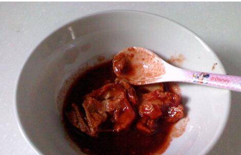 把图7的酱汁淋入肉碗内,然后雪菜放在面上,入高压锅压蒸30分钟,蒸好后,反倒扣即可。