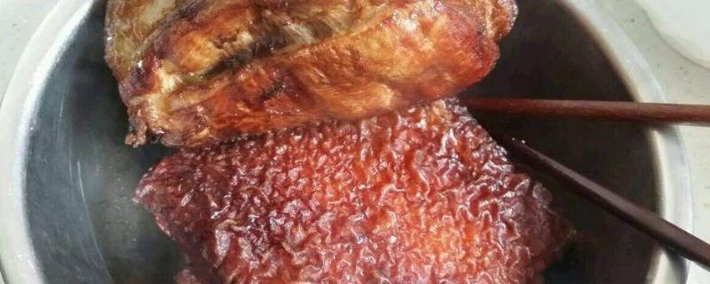锅内放入油,油热后将肉皮的一面放入锅中,炸至肉皮变成棕红色和起了小泡,翻个面稍炸一下。