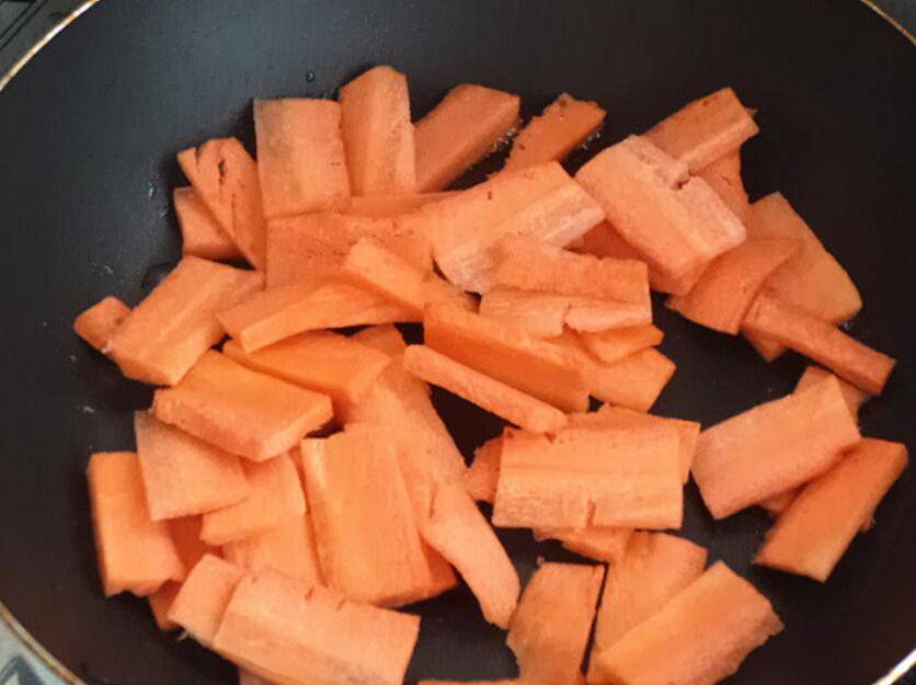 主料:胡萝卜150克、山药200克、橄榄油适量、味精适量、盐适量、葱姜适量。