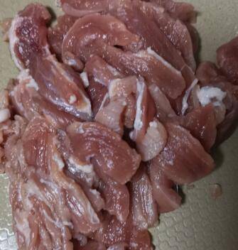 辣椒洗净切块,猪肉切片。