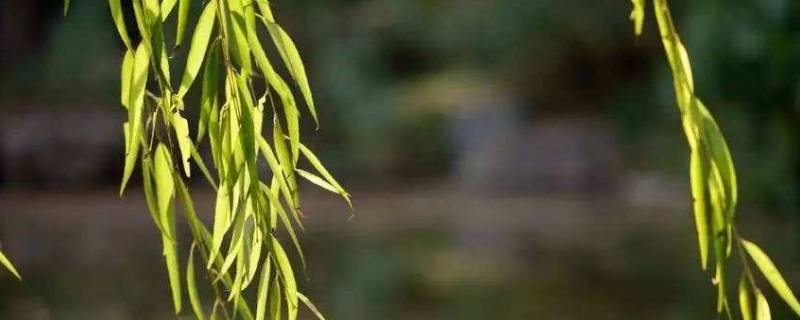 垂柳:又名杨柳,小杨,水柳,青丝柳,垂丝柳,清明柳。乔木,高可达18m,树冠开展而疏散。树皮灰黑色,不规则开裂;枝细,下垂,无毛。芽线形,先端急尖。叶狭披针形,长9-16cm,宽0.5-1.5cm,先端长渐尖,基部楔形,边缘具锯齿;叶柄长(3-)5-10mm,有短柔毛;托叶仅生在萌发枝上。花序先叶或与叶同时开放;雄花序长1.5-3cm,有短梗,轴有毛;雄蕊2,花药红黄色;苞片披针形,外面有毛;腺体2;雌花序长达2-5cm,有梗,基部有3-4小叶,轴有毛;子房椭圆形,无柄或近无柄,花柱短,柱头2-4深裂;苞片披针形,外面有毛;腺体有1。蒴果长3-4mm,花期3-4月,果期4-5月。