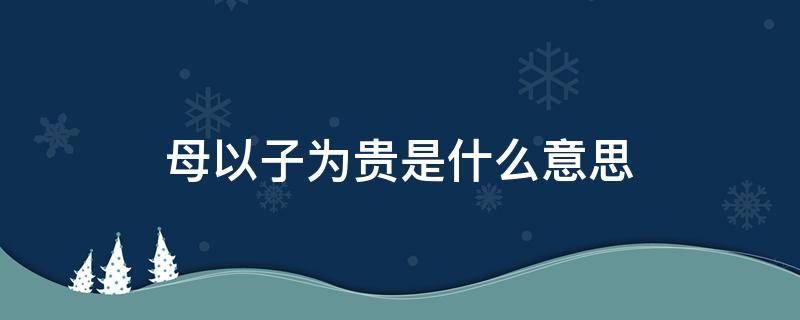 指母亲因儿子的显贵而显贵。这个是中国传统儒学中重要的伦理准则之一,母亲的身份随儿子地位的提高而提高。《公羊传-鲁隐公元年》:子以母贵,母以子贵。中国古代王位继承法规定,皇帝有嫡子,则立嫡不立长,母亲是否皇后决定儿子能否做太子;皇帝无嫡子,则立长不立贤,庶子立为太子后,其母多半可以立为皇后,儿子地位提高使母亲地位提高。其他诸侯的世袭爵位基本依据这一原则。