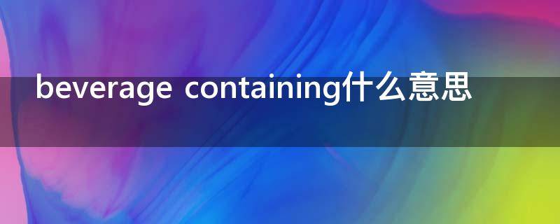 beverage containing是含饮料的意思。英语是一种西日耳曼语支,最早被中世纪的英国使用,并因其广阔的殖民地,而成为世界使用面积最广的语言。英国人的祖先盎格鲁部落是后来迁移到大不列颠岛地区的日耳曼部落之一,称为英格兰。这两个名字都来自波罗的海半岛的Anglia。该语言与弗里斯兰语和下撒克森语密切相关,其词汇受到其他日耳曼语系语言的影响,尤其是北欧语,并在很大程度上由拉丁文和法文撰写。