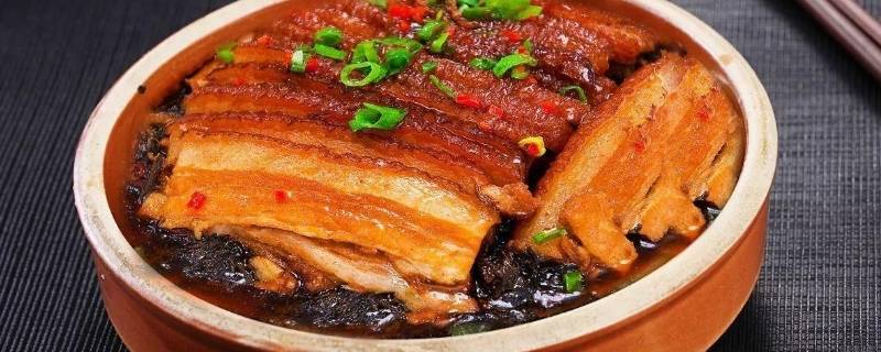 1、千张扣肉:此菜以肥瘦兼有的五花猪肉为原料,经煮炸后红糖上色,切成薄片以碗扣住蒸熟。由于肉片薄如纸、形如梭、片数多,故名千张扣肉,又名梳子肉。