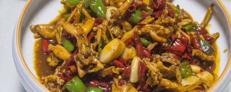 青蛙(养殖)、花椒、生抽、老抽、盐、醋、葱段、大蒜、姜、郫县豆瓣酱、老干妈、蒜苔、洋葱、小米辣、干辣椒、砂糖、米酒或白酒。