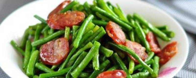 最佳答案用料:腊肠一根、青豆角半斤、姜、蒜末、盐、鸡粉。1、腊肠洗净切片。2、锅里放一点油,加入姜片、蒜末略炒。3、把腊肠倒入锅中,稍微煎一下,盛出备用。4、豆角掐成小段,洗干净,沥水备用。5、锅里加入适量油,倒入豆角翻炒到全部变色。6、加入适量水、盐、鸡粉调味,煮几分钟。7、然后倒入煎好的...