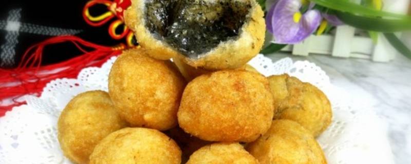 4、全部放入后炸一会至颜色变成浅黄色时,用漏勺将元宵从油中捞出。
