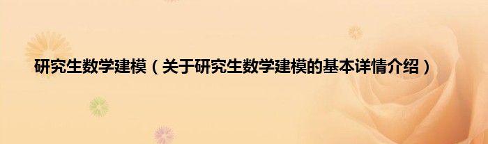 本文关于研究生数学建模的基本详情介绍就讲解完毕,希望对大家有所帮助。