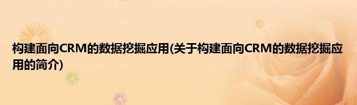 大家好,构建面向CRM的数据挖掘应用,关于构建面向CRM的数据挖掘应用的简介很多人还不知道,现在让我们一起来看看吧!