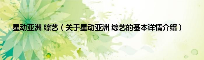 本文关于星动亚洲 综艺的基本详情介绍就讲解完毕,希望对大家有所帮助。