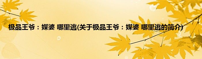 本文关于极品王爷:媒婆,哪里逃的简介就讲解完毕,希望对大家有所帮助。