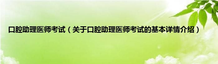 本文关于口腔助理医师考试的基本详情介绍就讲解完毕,希望对大家有所帮助。