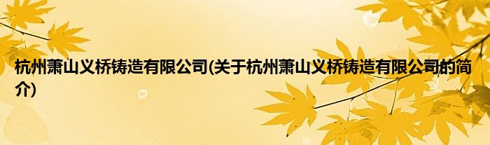 本文关于杭州萧山义桥铸造有限公司的简介就讲解完毕,希望对大家有所帮助。