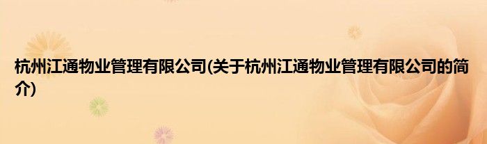 本文关于杭州江通物业管理有限公司的简介就讲解完毕,希望对大家有所帮助。