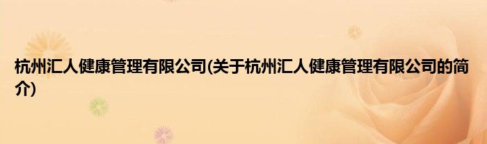 本文关于杭州汇人健康管理有限公司的简介就讲解完毕,希望对大家有所帮助。