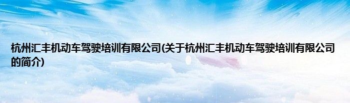 大家好,杭州汇丰机动车驾驶培训有限公司,关于杭州汇丰机动车驾驶培训有限公司的简介很多人还不知道,现在让我们一起来看看吧!