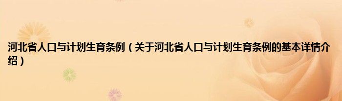 本文关于河北省人口与计划生育条例的基本详情介绍就讲解完毕,希望对大家有所帮助。