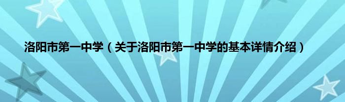 本文关于洛阳市第一中学的基本详情介绍就讲解完毕,希望对大家有所帮助。