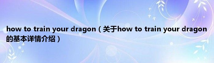 本文关于how to train your dragon的基本详情介绍就讲解完毕,希望对大家有所帮助。