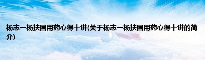 本文关于杨志一杨扶国用药心得十讲的简介就讲解完毕,希望对大家有所帮助。