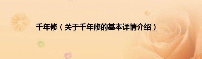 本文关于千年修的基本详情介绍就讲解完毕,希望对大家有所帮助。