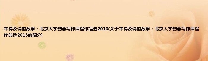 1、 《来得及说的故事:北京大学创意写作课程作品选2016》是2017年贵州教育出版社出版的图书。