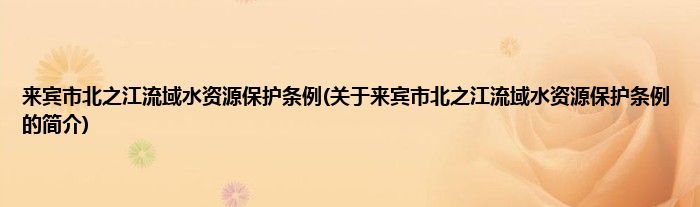本文关于来宾市北之江流域水资源保护条例的简介就讲解完毕,希望对大家有所帮助。