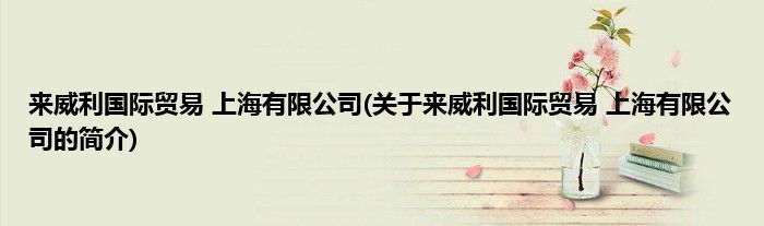 本文关于来威利国际贸易 上海有限公司的简介就讲解完毕,希望对大家有所帮助。