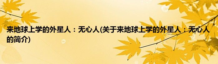 本文关于来地球上学的外星人:无心人的简介就讲解完毕,希望对大家有所帮助。