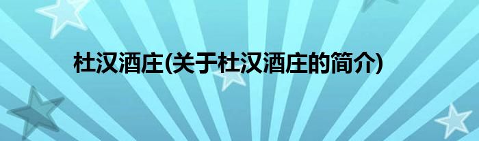 本文关于杜汉酒庄的简介就讲解完毕,希望对大家有所帮助。