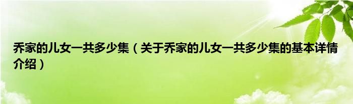 本文关于乔家的儿女一共多少集的基本详情介绍就讲解完毕,希望对大家有所帮助。