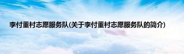 大家好,李付董村志愿服务队,关于李付董村志愿服务队的简介很多人还不知道,现在让我们一起来看看吧!
