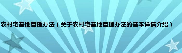 本文关于农村宅基地管理办法的基本详情介绍就讲解完毕,希望对大家有所帮助。