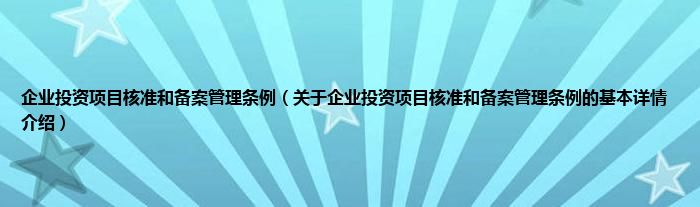 本文关于企业投资项目核准和备案管理条例的基本详情介绍就讲解完毕,希望对大家有所帮助。