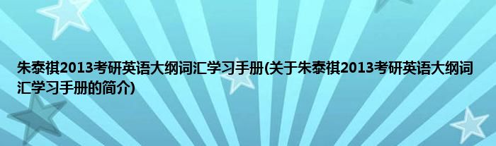 本文关于朱泰祺2013考研英语大纲词汇学习手册的简介就讲解完毕,希望对大家有所帮助。