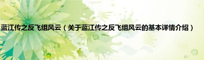 本文关于蓝江传之反飞组风云的基本详情介绍就讲解完毕,希望对大家有所帮助。