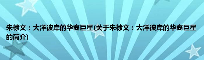 1、 《朱棣文大洋彼岸的华裔巨星》是2009年北京交通大学出版社出版的图书。