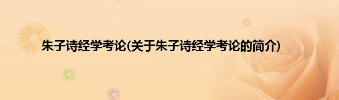 本文关于朱子诗经学考论的简介就讲解完毕,希望对大家有所帮助。