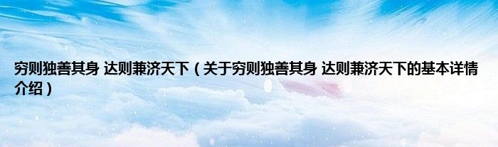 本文关于穷则独善其身 达则兼济天下的基本详情介绍就讲解完毕,希望对大家有所帮助。