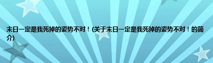 末日一定是我死掉的姿势不对!(关于末日一定是我死掉的姿势不对!的简介)