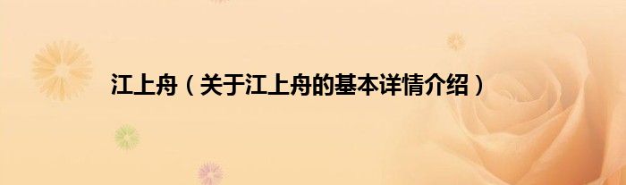本文关于江上舟的基本详情介绍就讲解完毕,希望对大家有所帮助。