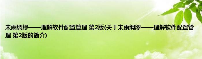 大家好,未雨绸缪——理解软件配置管理 第2版,关于未雨绸缪——理解软件配置管理 第2版的简介很多人还不知道,现在让我们一起来看看吧!