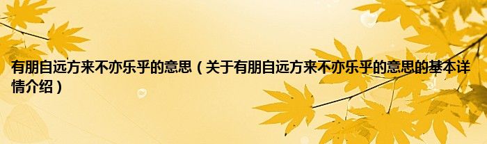 本文关于有朋自远方来不亦乐乎的意思的基本详情介绍就讲解完毕,希望对大家有所帮助。