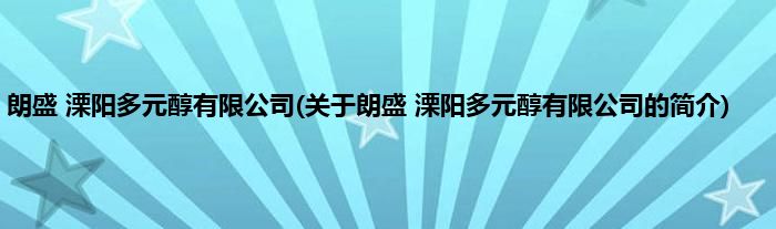 本文关于朗盛 溧阳多元醇有限公司的简介就讲解完毕,希望对大家有所帮助。