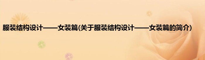 本文关于服装结构设计——女装篇的简介就讲解完毕,希望对大家有所帮助。