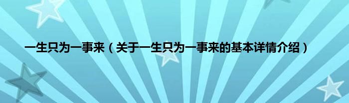 本文关于一生只为一事来的基本详情介绍就讲解完毕,希望对大家有所帮助。
