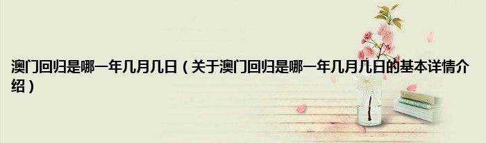 澳门回归是哪一年几月几日(关于澳门回归是哪一年几月几日的基本详情介绍)