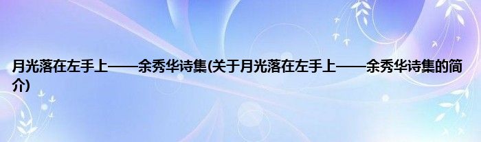 本文关于月光落在左手上——余秀华诗集的简介就讲解完毕,希望对大家有所帮助。