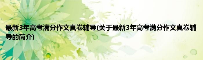 本文关于最新3年高考满分作文真卷辅导的简介就讲解完毕,希望对大家有所帮助。